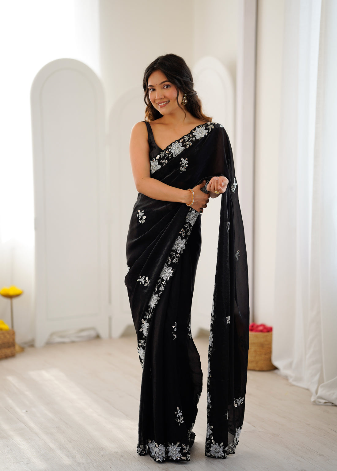 SAREE FABRIC – CRUNCHY CRUSH Padding SAREE LENGTH- 5.50 Meter SAREE WORK- Dual sequences Embroidery...