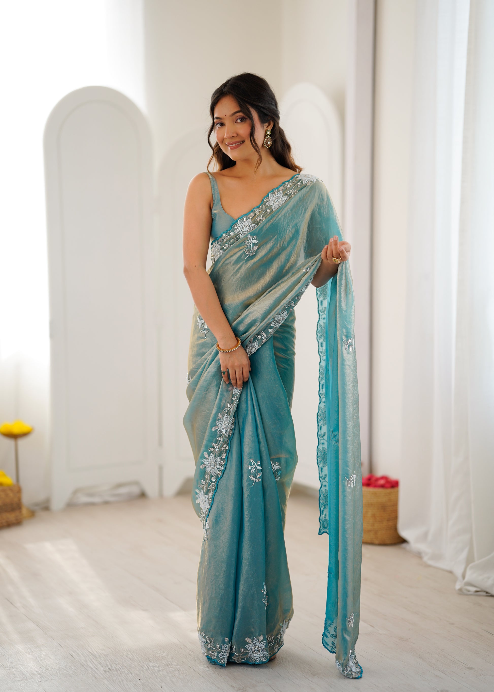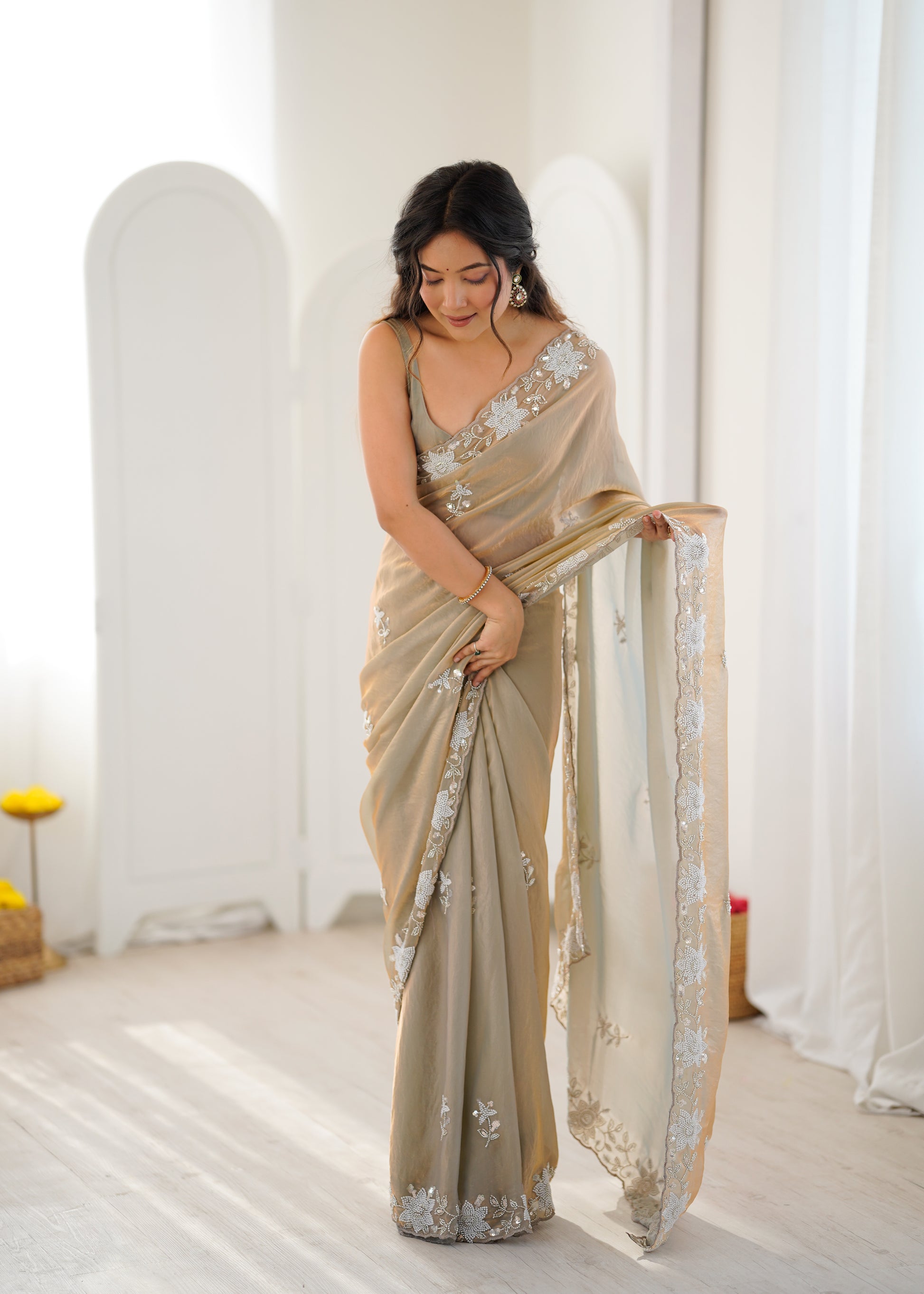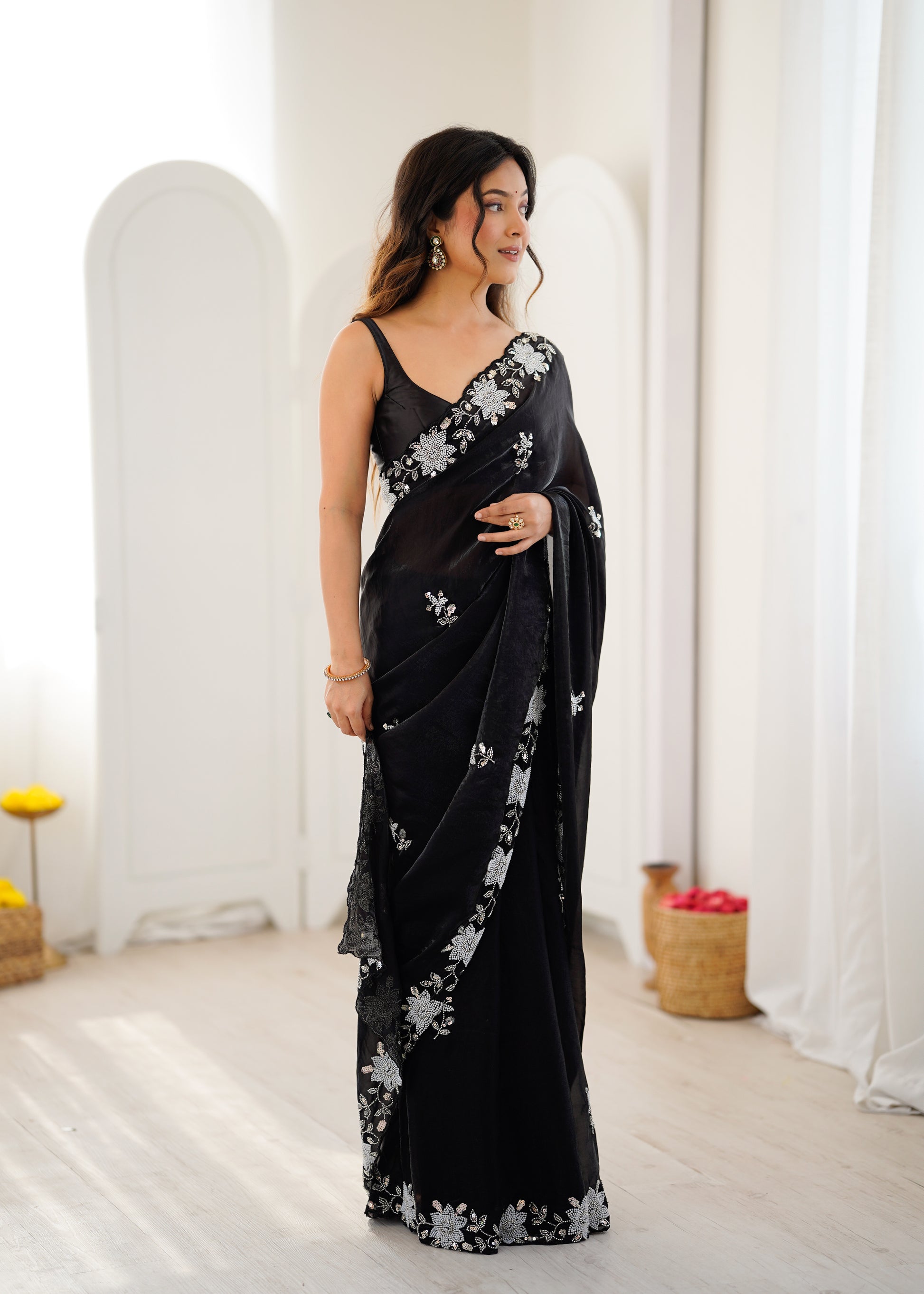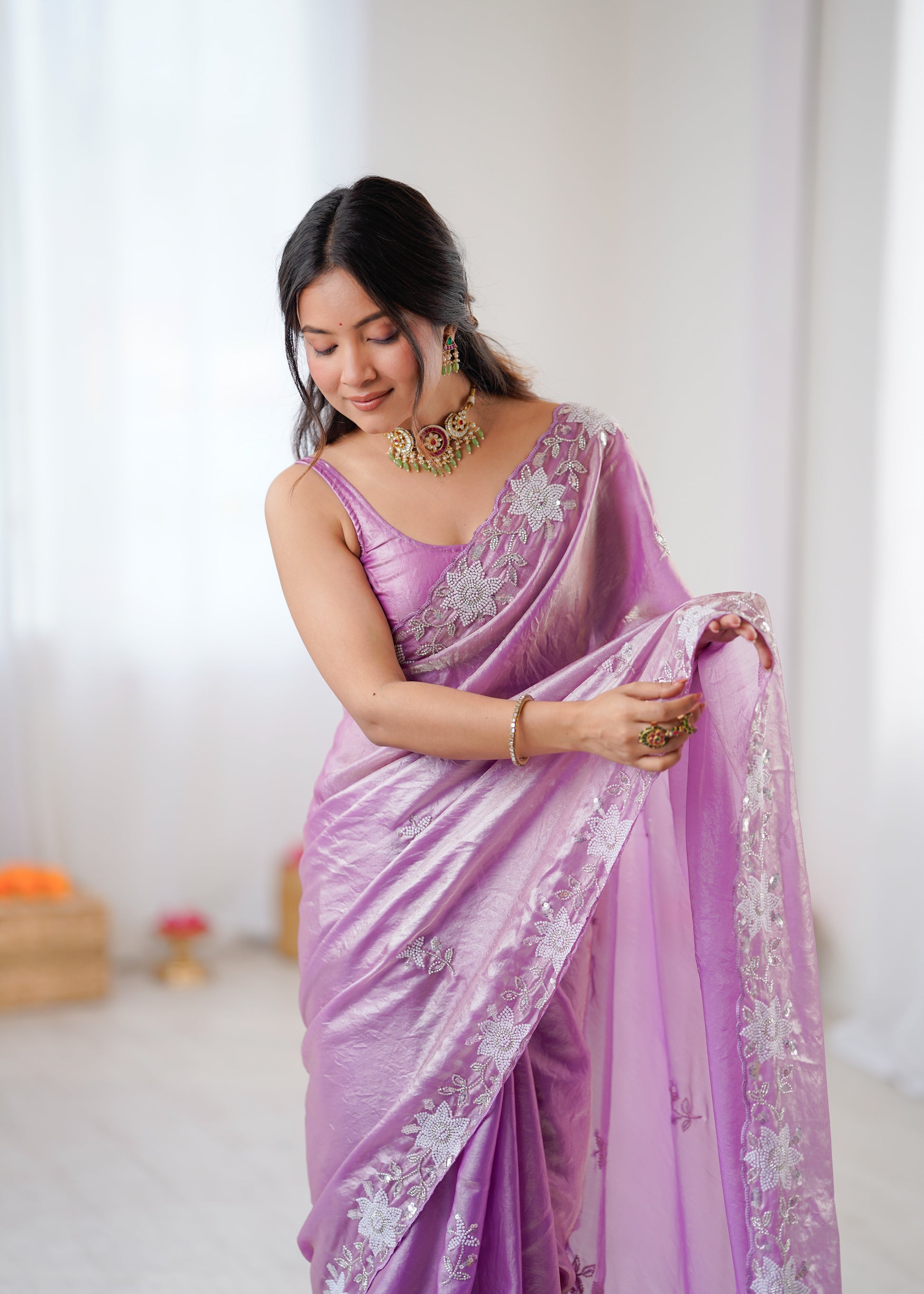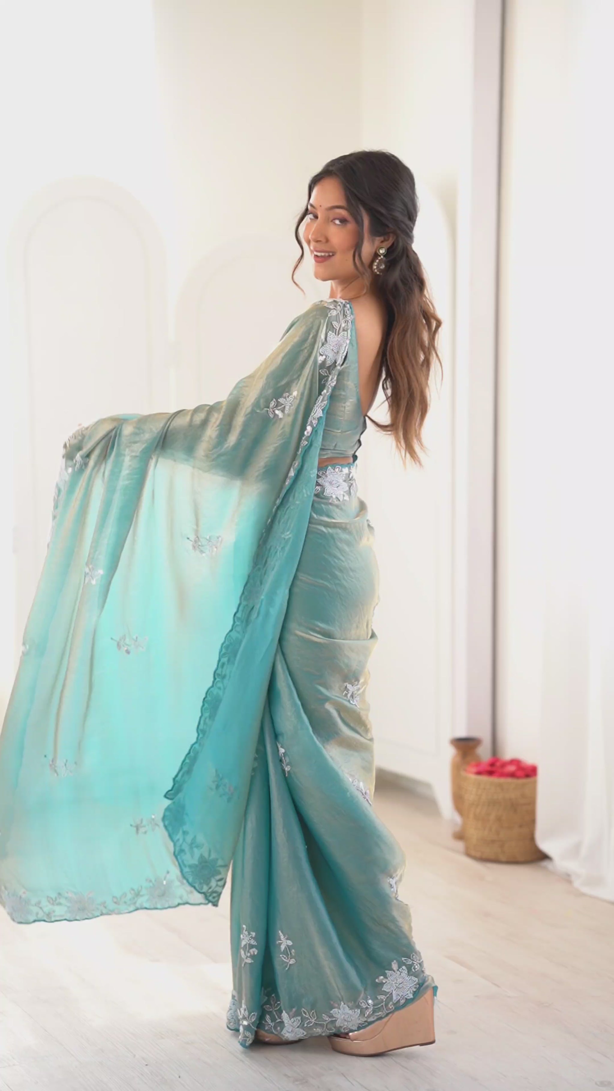 SAREE WORK - SEQUINS AND MOTI AND CUTDANA WORK