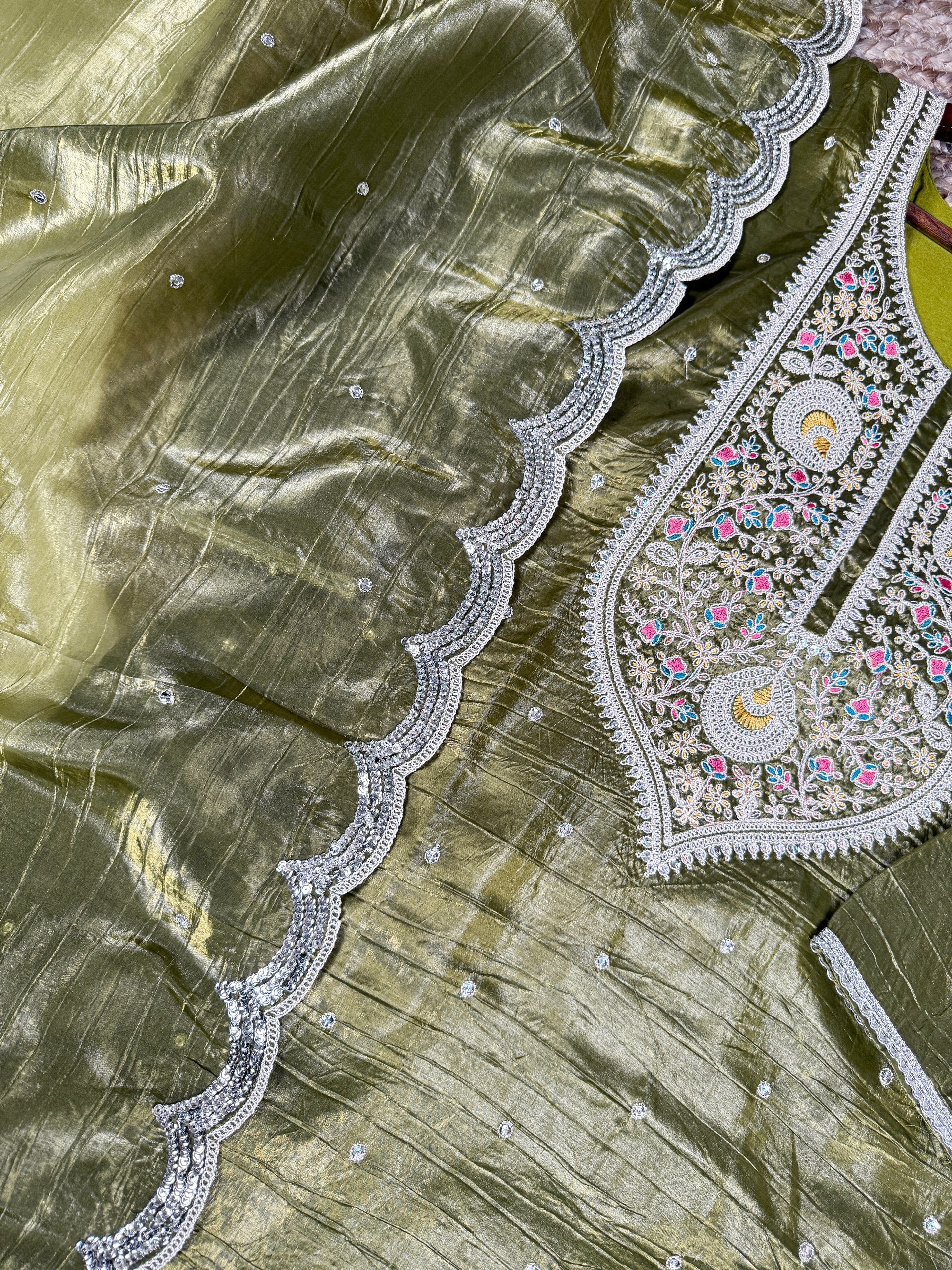 Dupatta Fabric : Gold Crush; Dupatta Work: Sequins and Thread Embroidery Work; Dupatta Length: 2.4 MeterÂ
