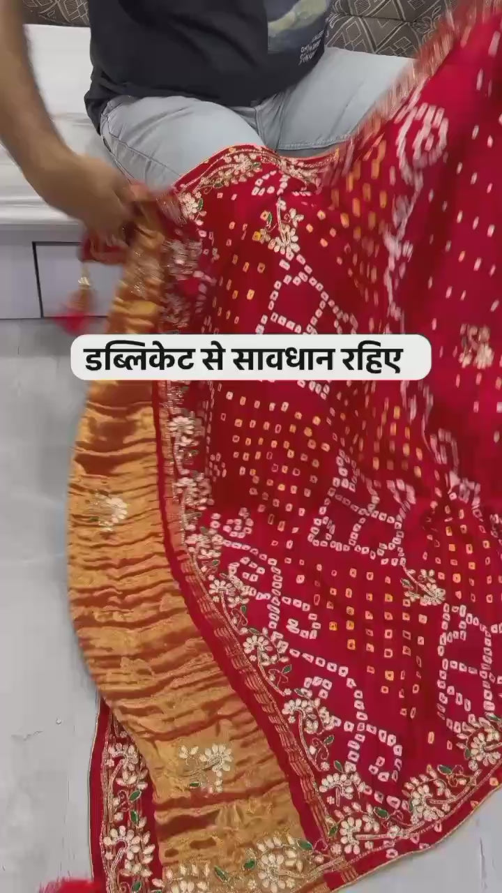 Gaji Silk Original Bandhani With Gota Pati Hand Work Saree.