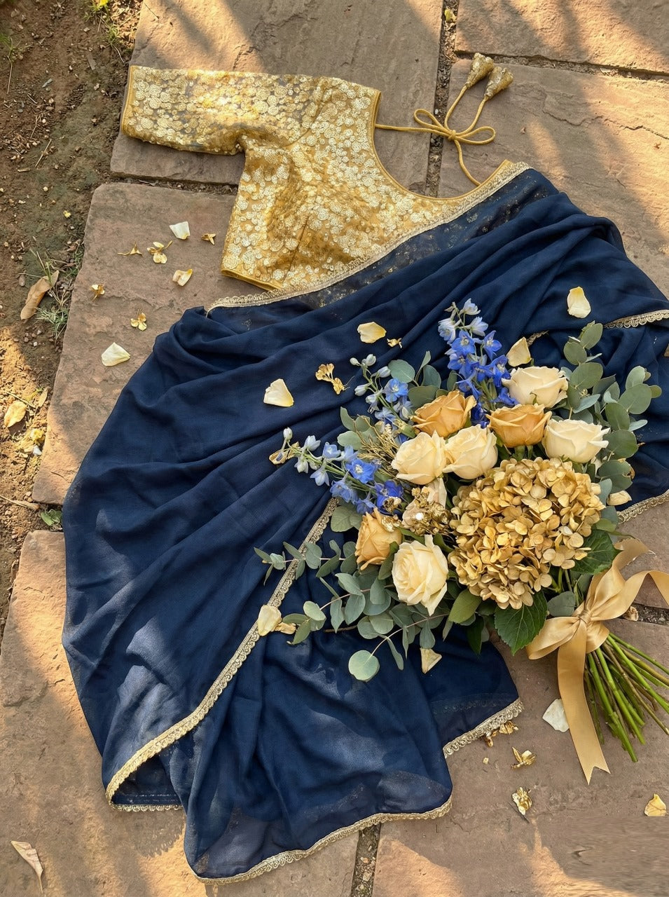ELEGANT STAR GEORGETTE SAREE WITH STITCHED BLOUSE – TIMELESS BEAUTY