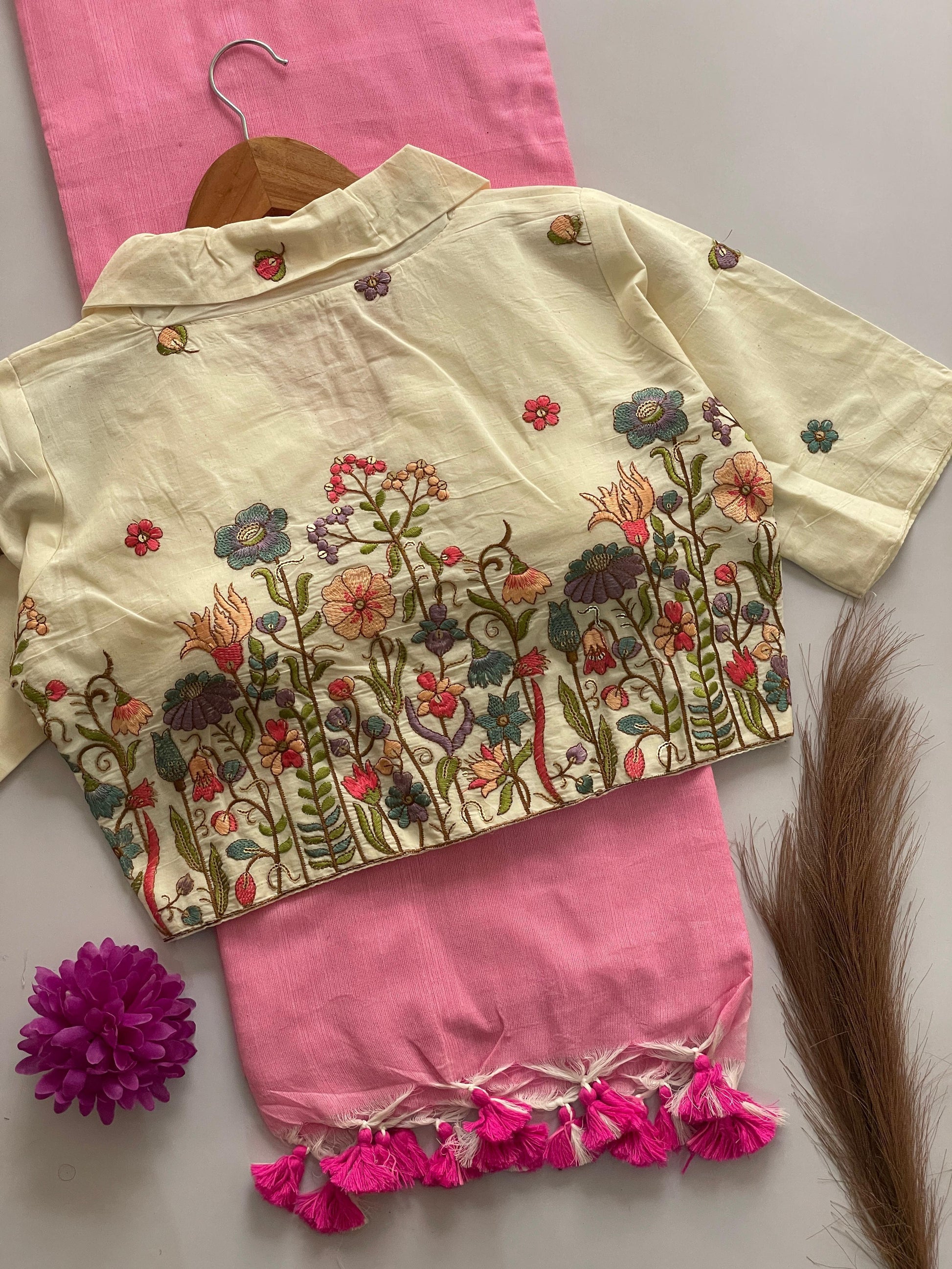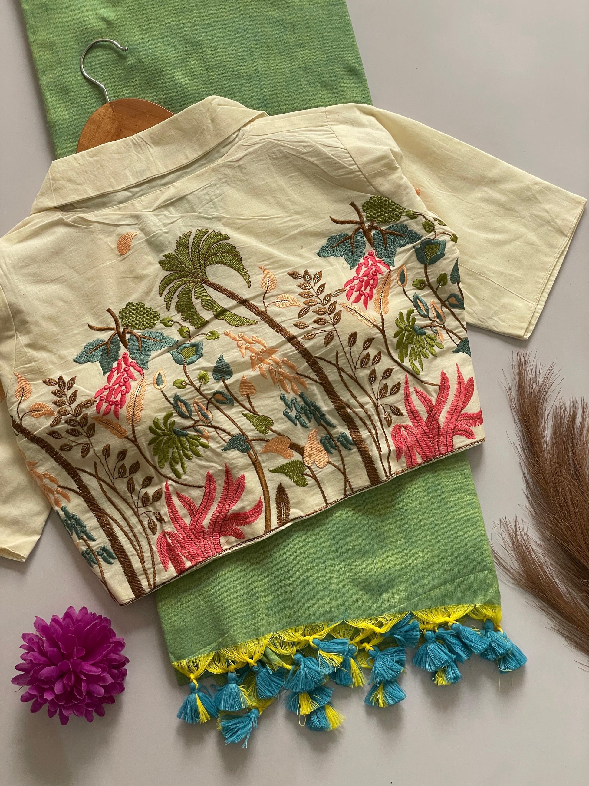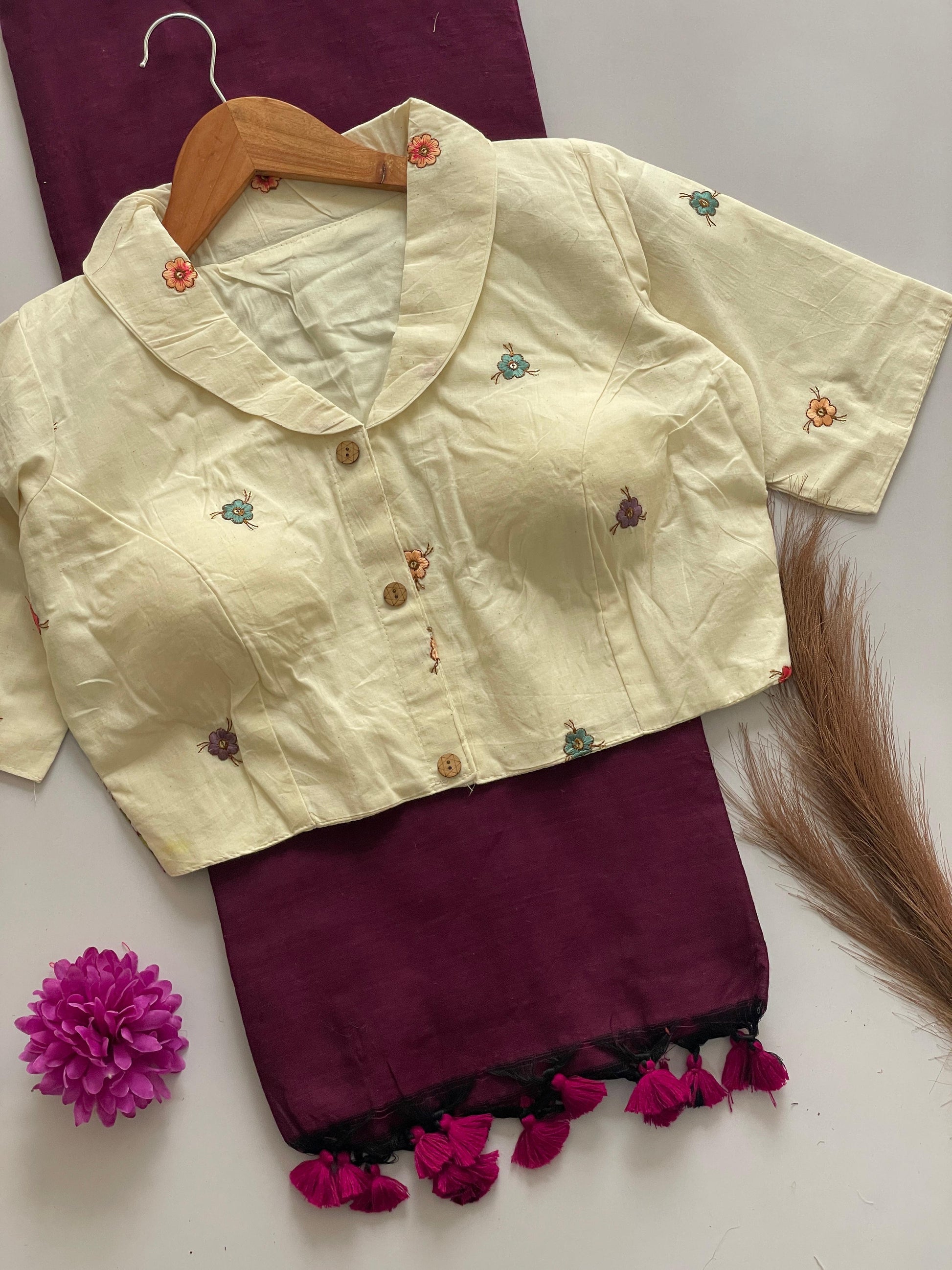 ORIGINAL KHADI COTTON COLLAR NECK BLOUSE WITH KHADI COTTON SAREE